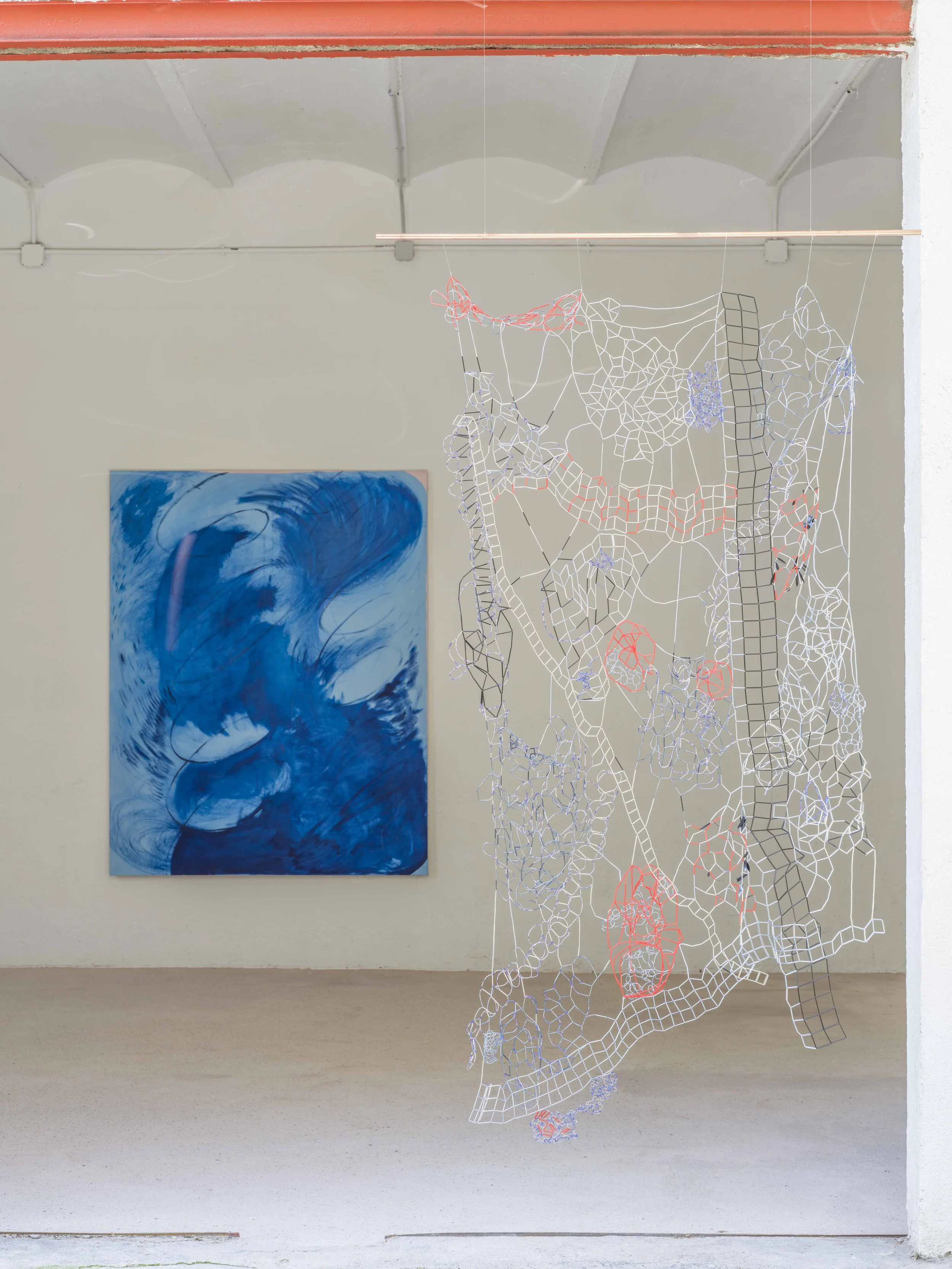 I’d like to work with space as if it were a weave—something that can be cut and picked up again, like a conversation. The gallery space becomes the language of our dialogue, where our works can collide with one another through their formats. They will create a new space as they step away from the walls.